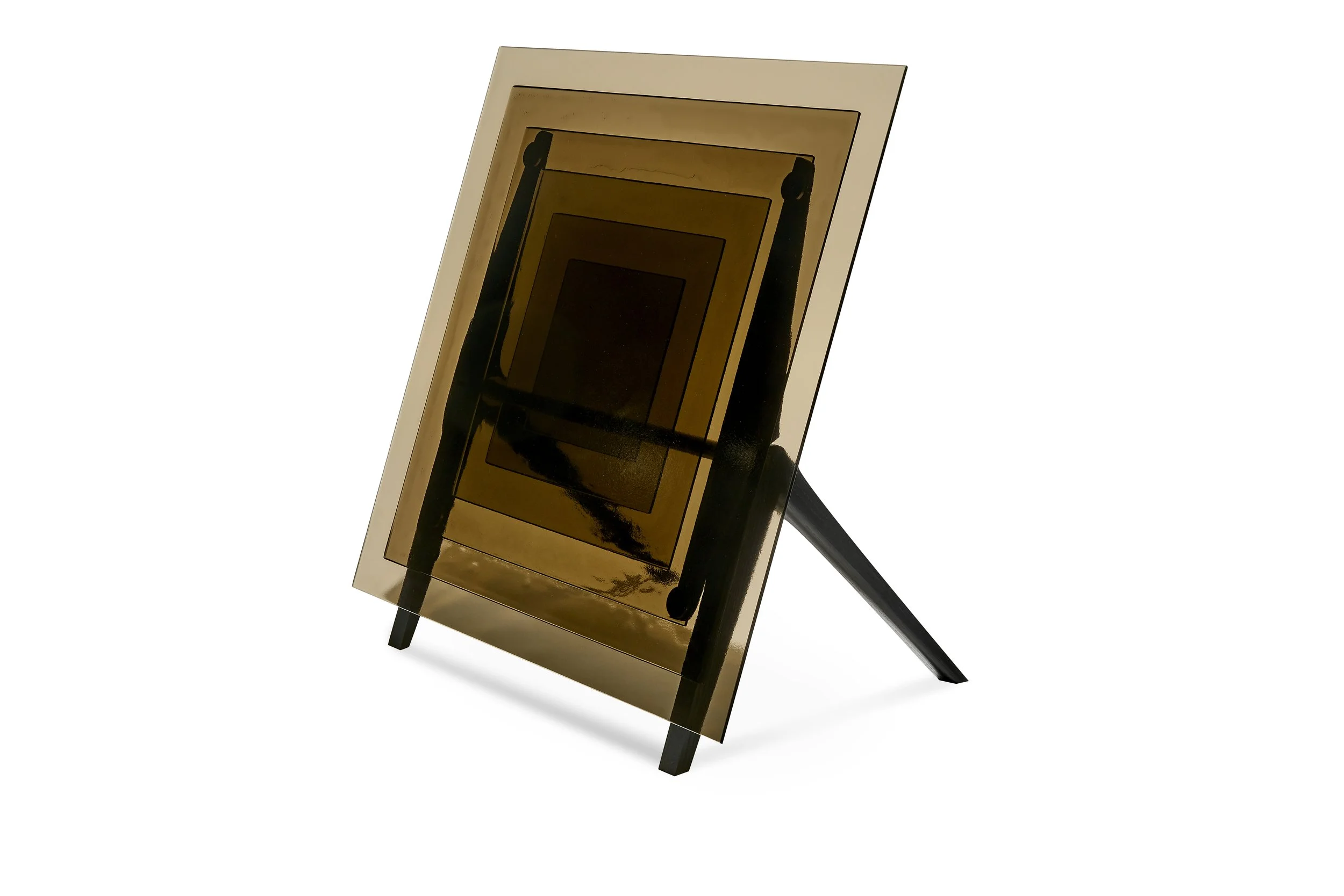 FRAME Adam Goodrum 2018 Fused bronze glass, timber base 1000x1000mm FRAME was one of four Easels purchased by the National Gallery of Victoria (NGV) for its permanent collection. $18,000 Purchase enquiry