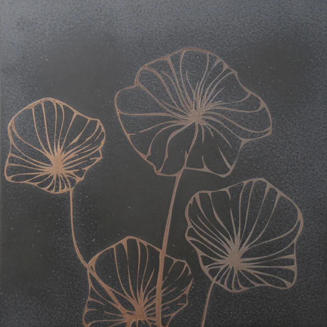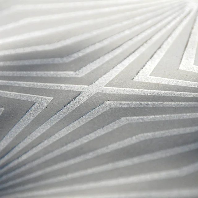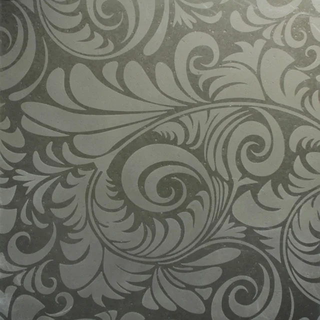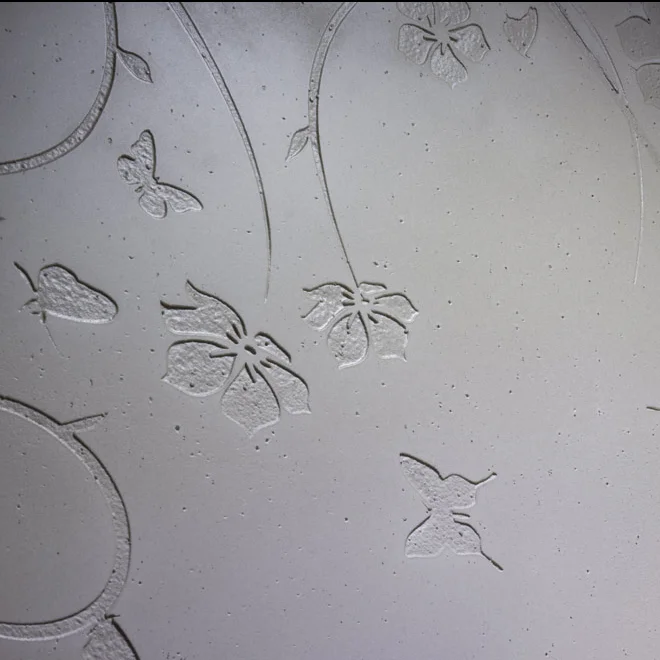 Offering unlimited design possibilities, patterns and textures can be carved into the substrate then coated, or imprinted onto the surface of the concrete creating an unique juxtaposition of fine detail in what is traditionally a construction material. The surface can also be inlaid with metal or coloured resins. Application opportunities are endless ranging from walls and joinery, to signage and sculpture.