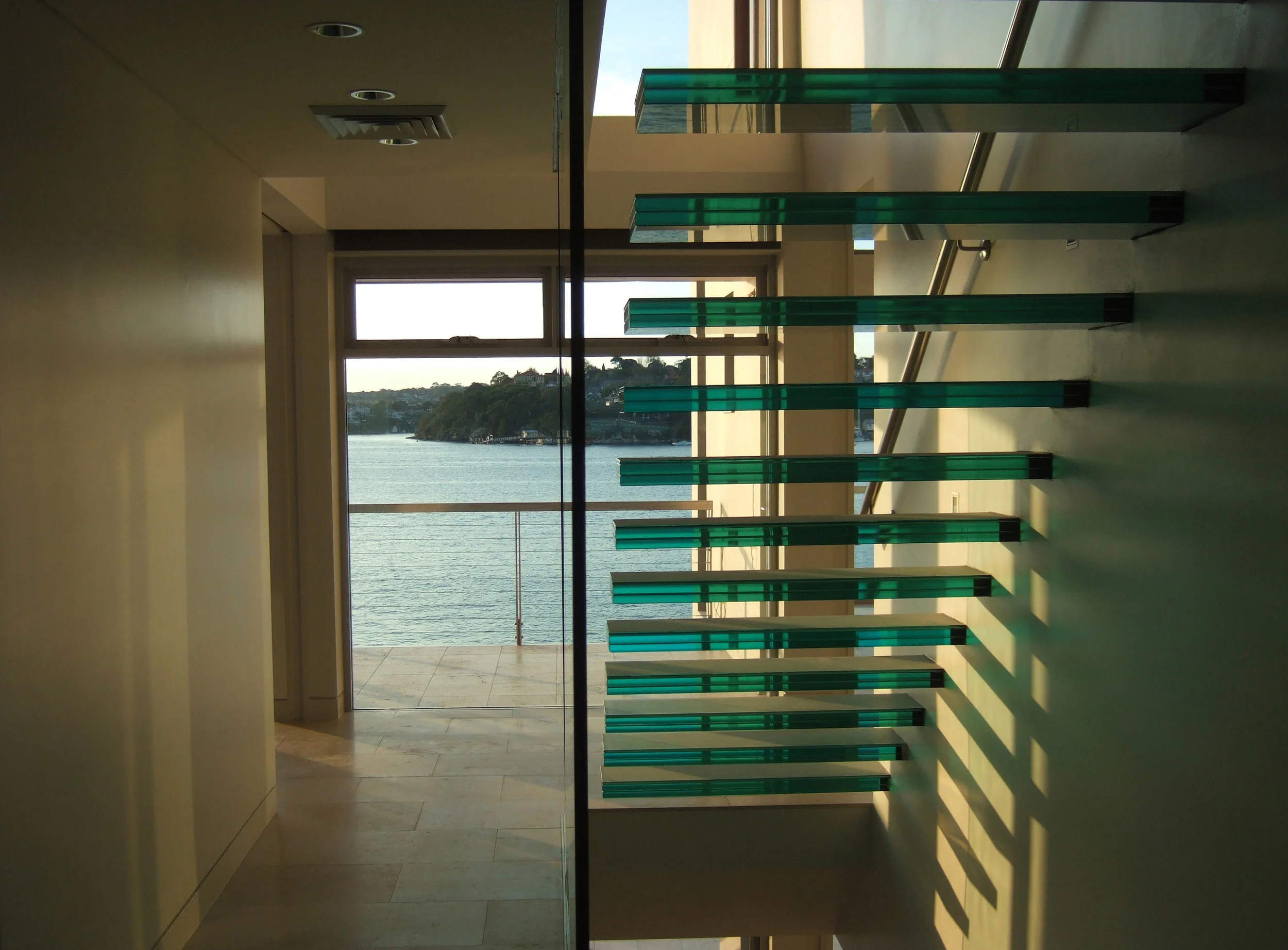 Axolotl glass flooring is designed to meet the most demanding requirements in both residential and commercial projects. Glass floors range in thickness from 25mm through to 47mm, depending upon the application. Small insert panels or stair treads can be a double laminated construction with a formed top surface, liquid resin interlayer and/or a clear or matt blasted bottom layer. Large panels for a complete room can be constructed from triple laminated glass with a clear or opaque interlayer. All glass flooring features a non-slip top surface to meet Australian Standards.