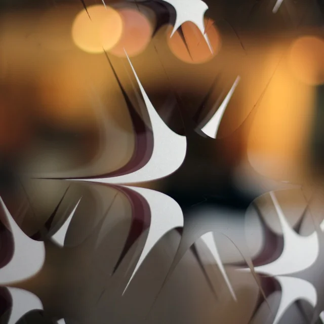 Mirror Mirror is a three-dimensional double-layered glass. By offsetting the two layers of glass and combining various techniques such as backlighting, painting and mirror, a sense of depth and optical illusion is created.