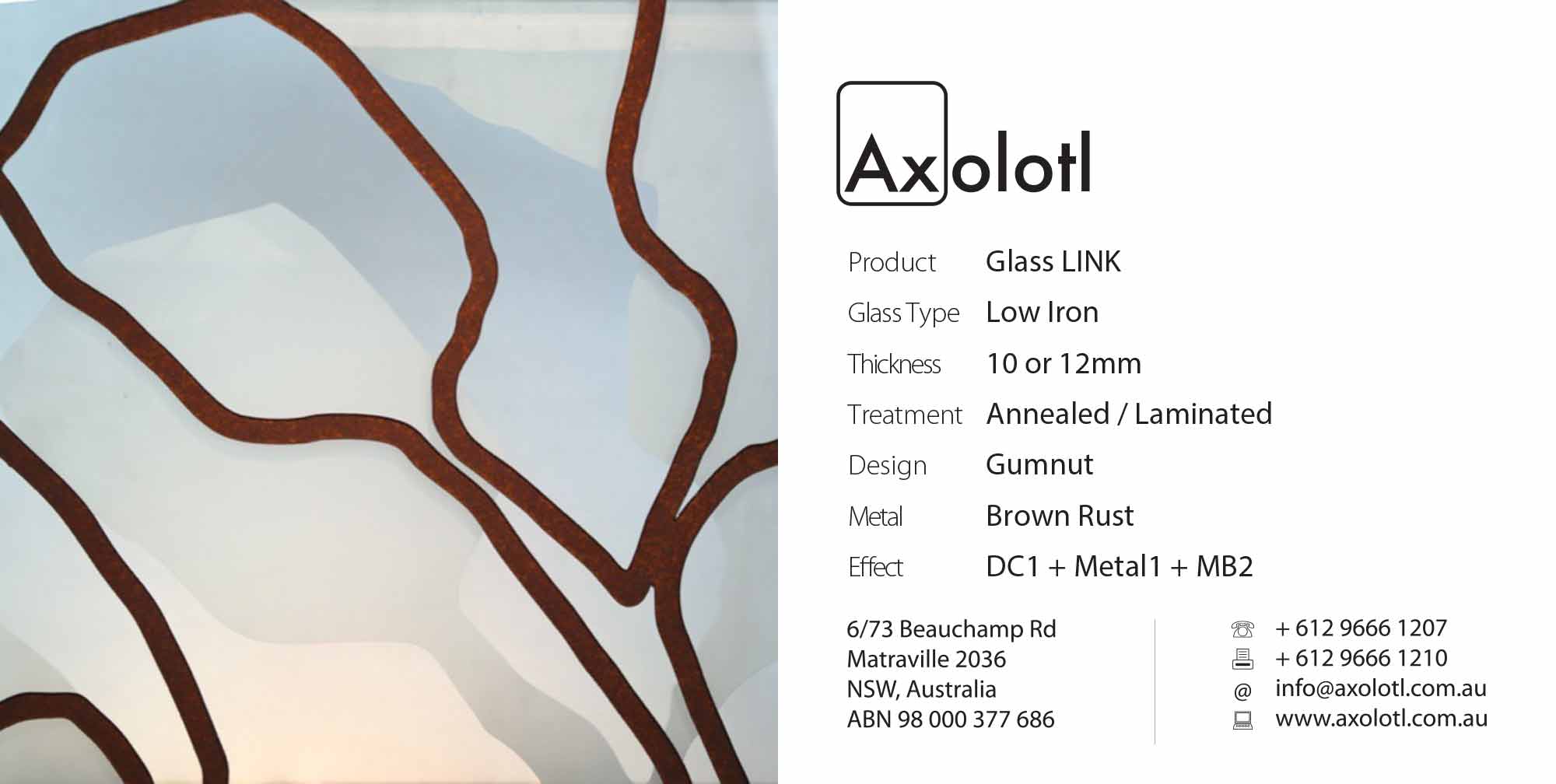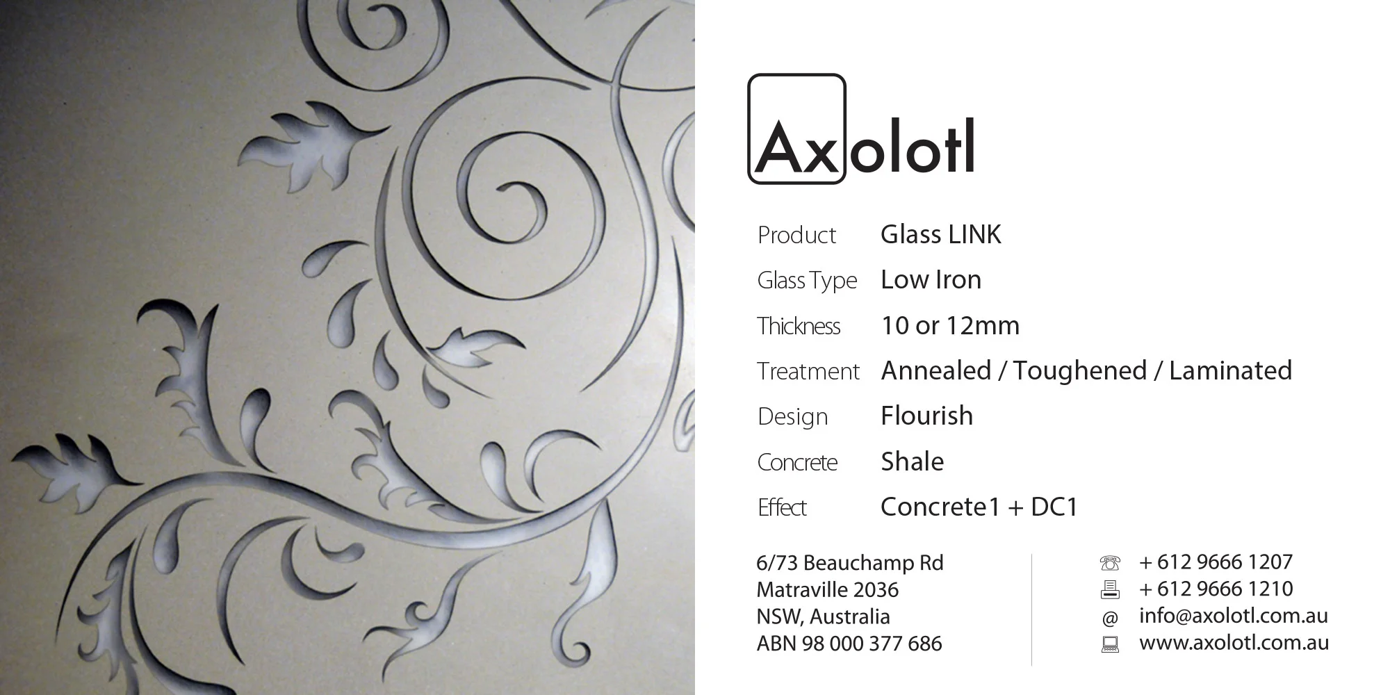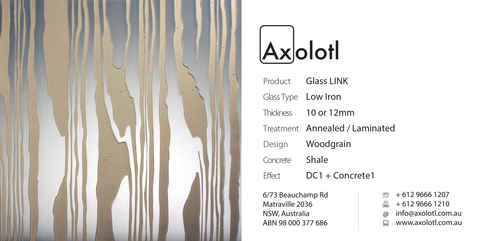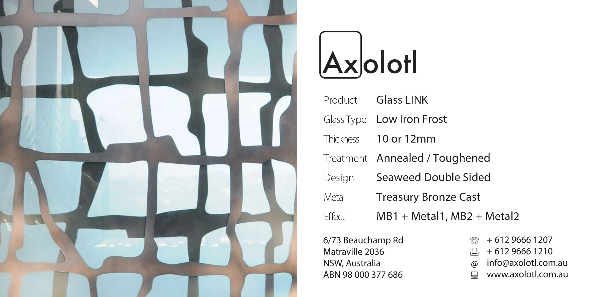 Exclusive to Axolotl, LINK glass combines Axolotlβs unique metal and concrete coating technologies with glass. Custom metal and concrete designs can be directly applied onto or carved and inlaid into the surface of glass.