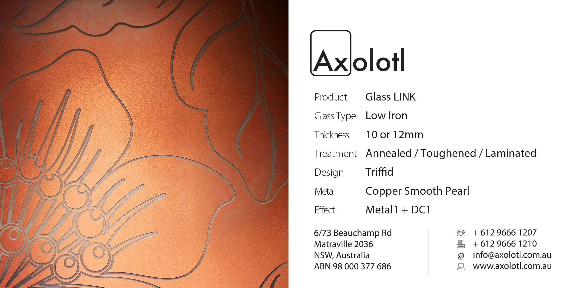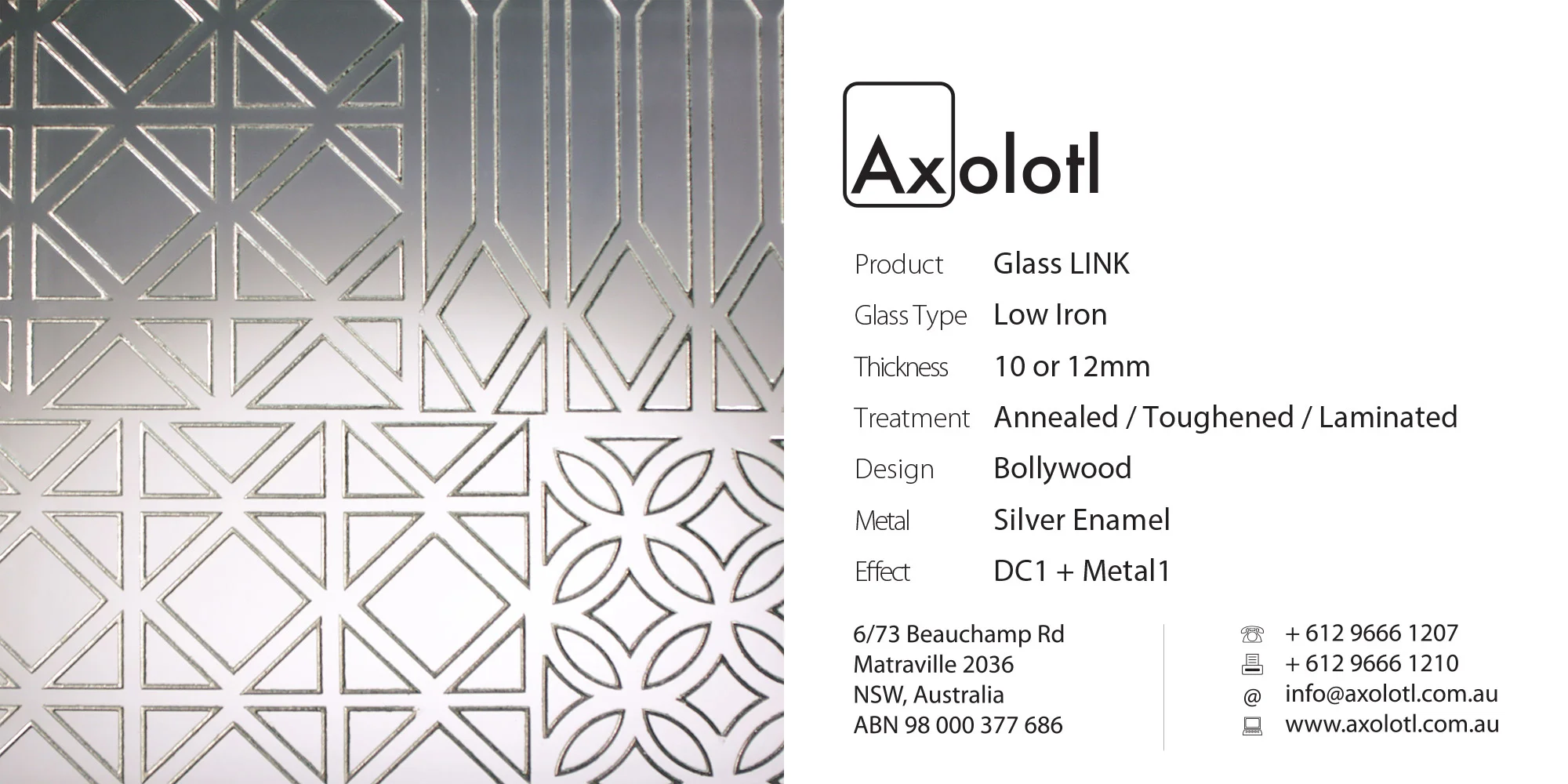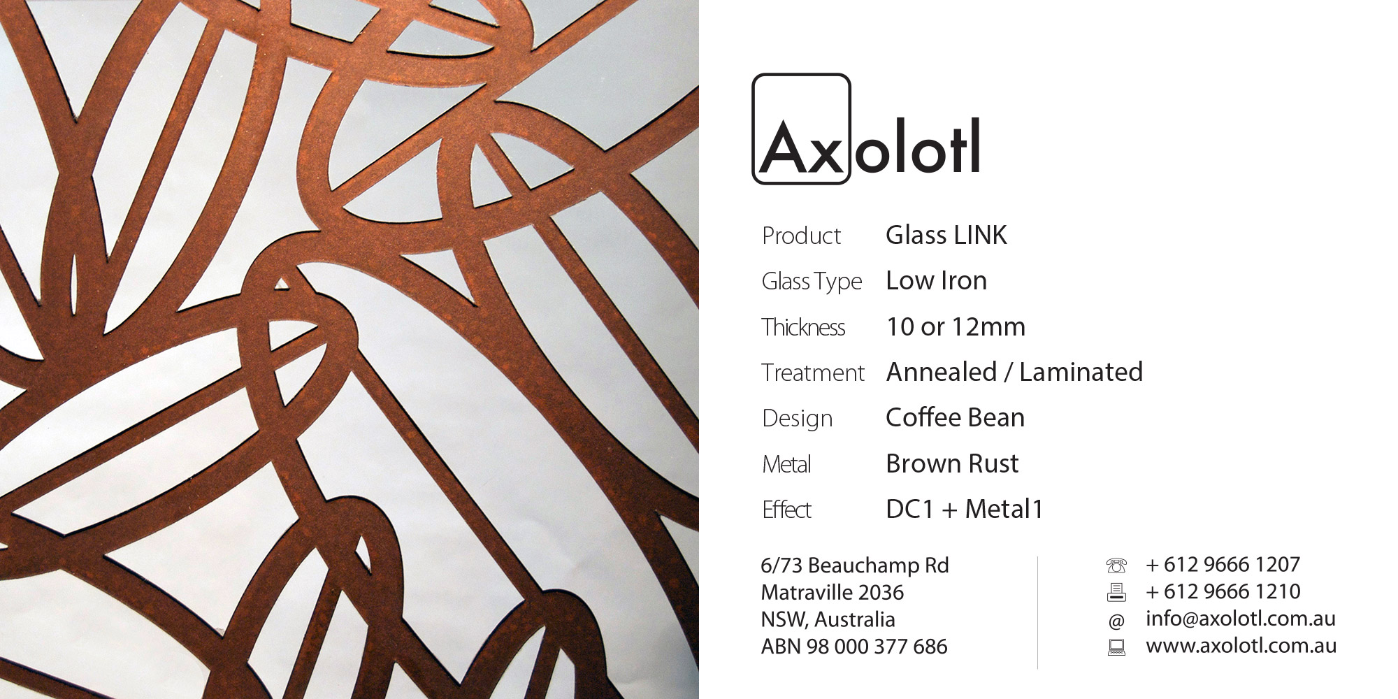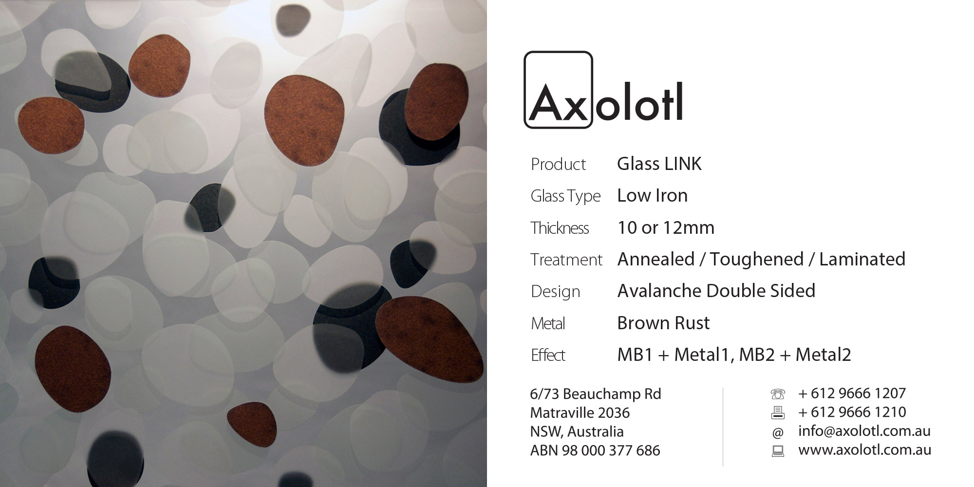 Exclusive to Axolotl, LINK glass combines Axolotlβs unique metal and concrete coating technologies with glass. Custom metal and concrete designs can be directly applied onto or carved and inlaid into the surface of glass.