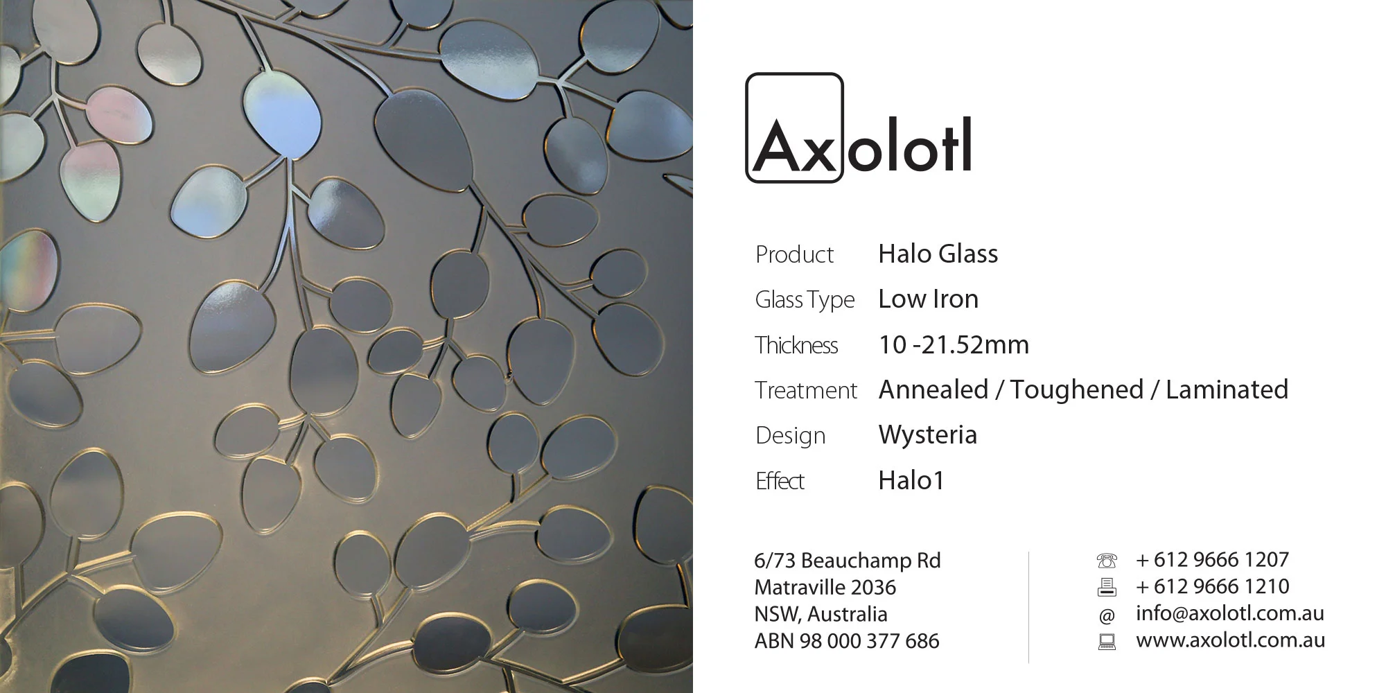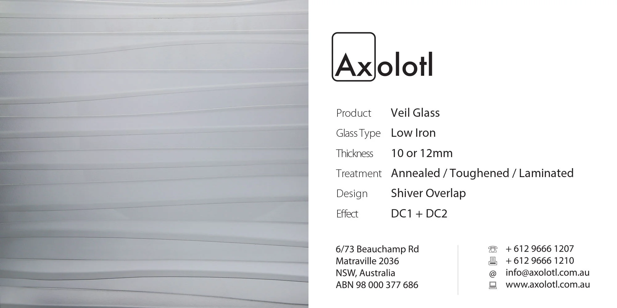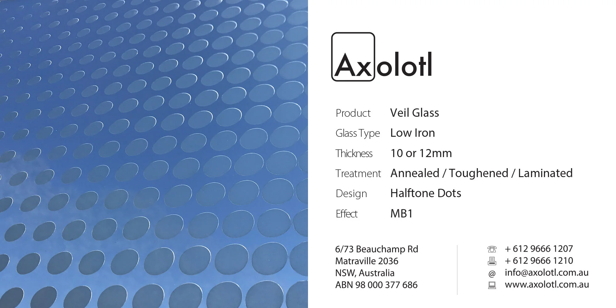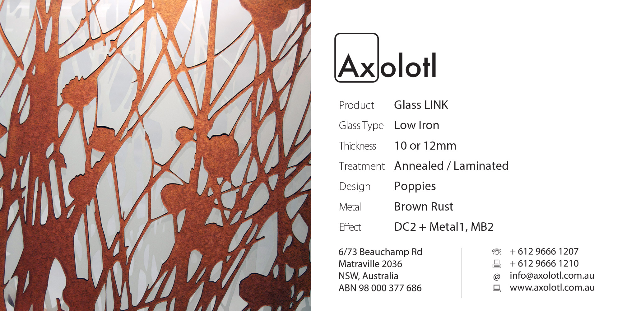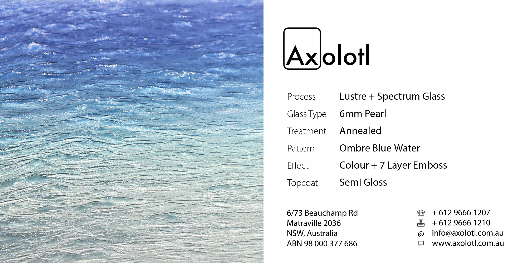 Lustre Spectrum is typically available as 6mm thick annealed glass, however can be produced in different thicknesses or as toughened float if required.