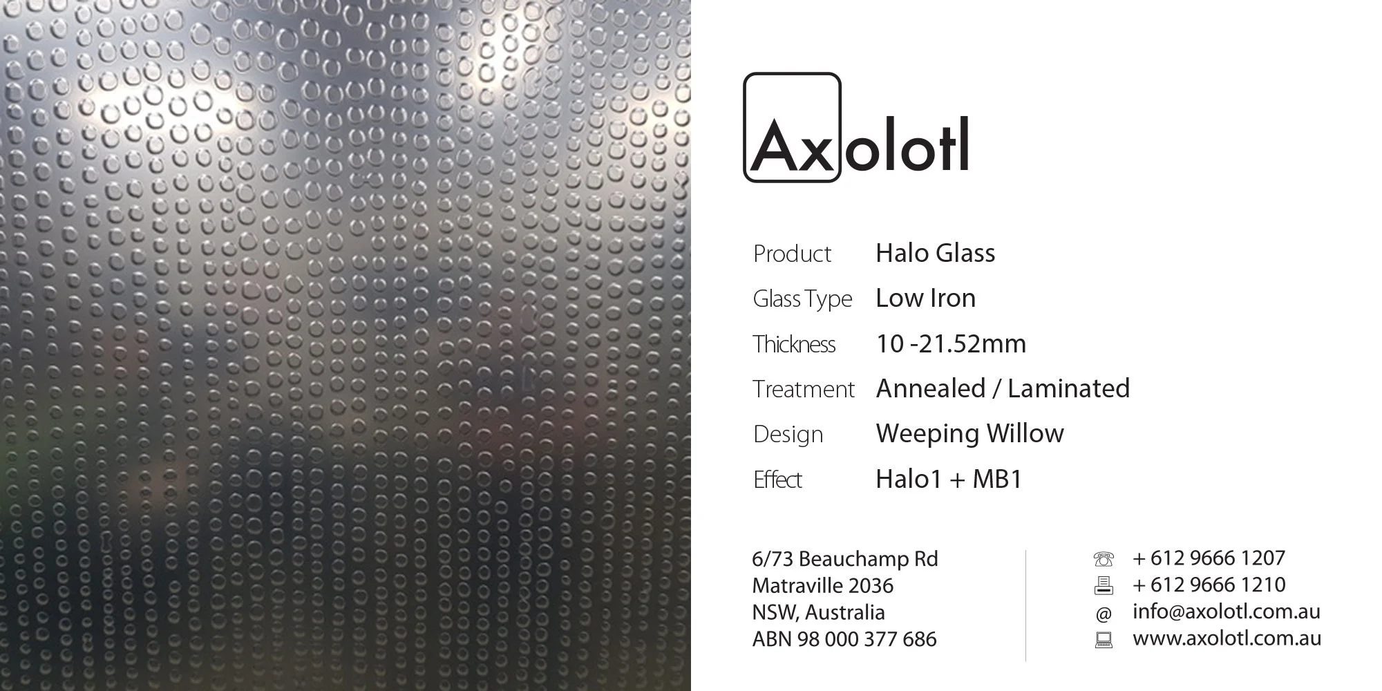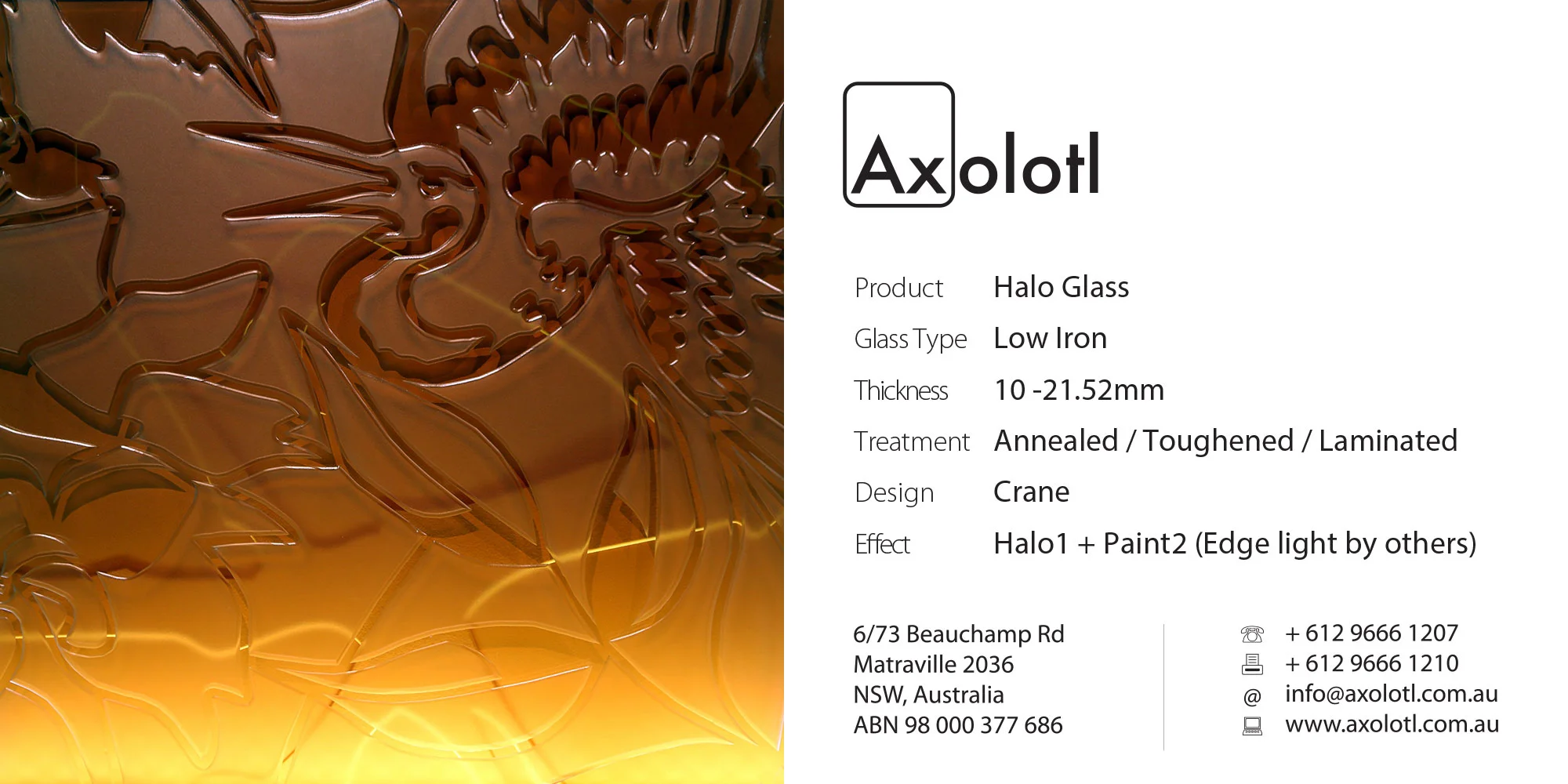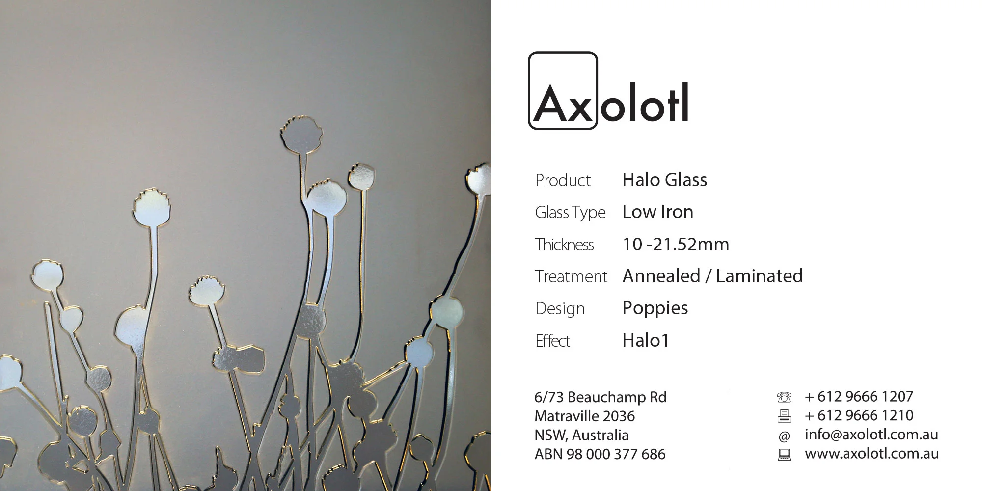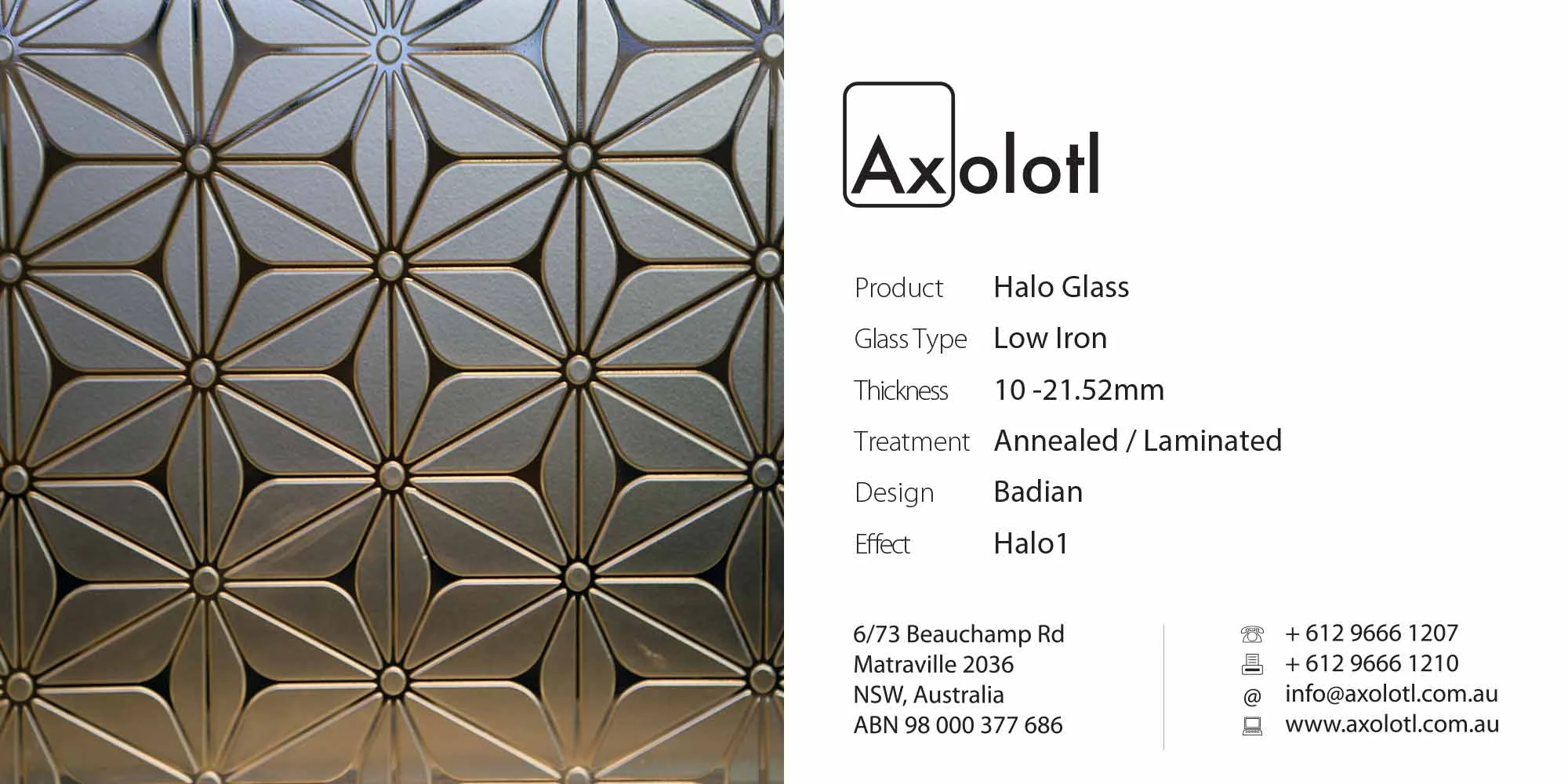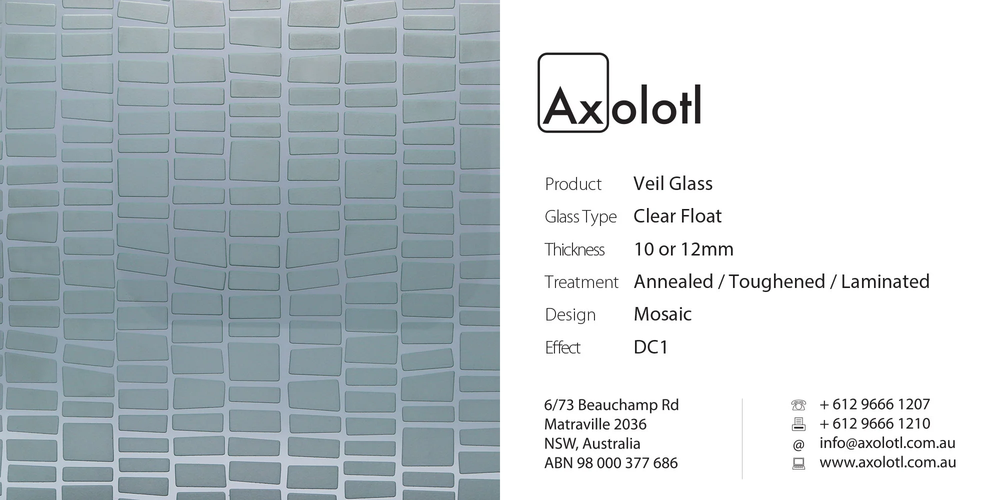 Lustre Spectrum is typically available as 6mm thick annealed glass, however can be produced in different thicknesses or as toughened float if required.