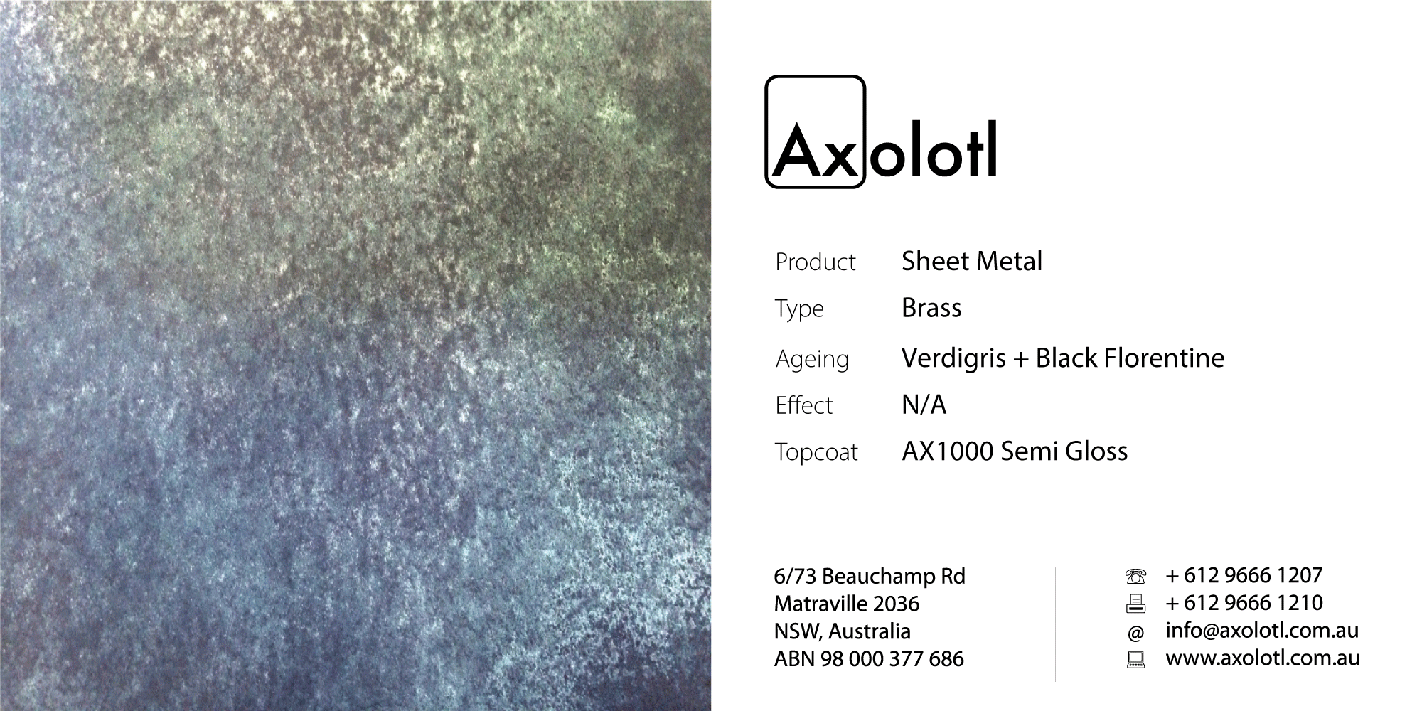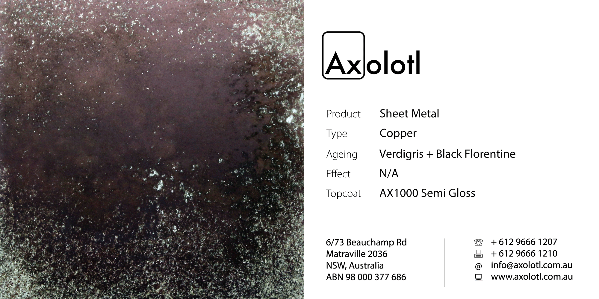 Axolotl Sheet Metal is a new extension of the Axolotl offer. Sheet metals are now able to be patinated in a variety of different colours, from verdigris, florentine and pearl. Axolotl sheet metals, such as copper, brass, aluminium, zinc and stainless steel are available in a variety of thicknesses and can be used where sheet metal is required in lieu of our decorative metal coatings. This range offers architects and designers the ability to specify pre-aged panels on a new build or renovation, avoiding bright and inconsistent 'fresh' metal, while ensuring the characteristics of the solid metal are retained.