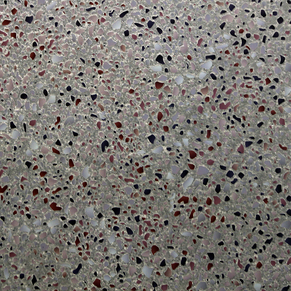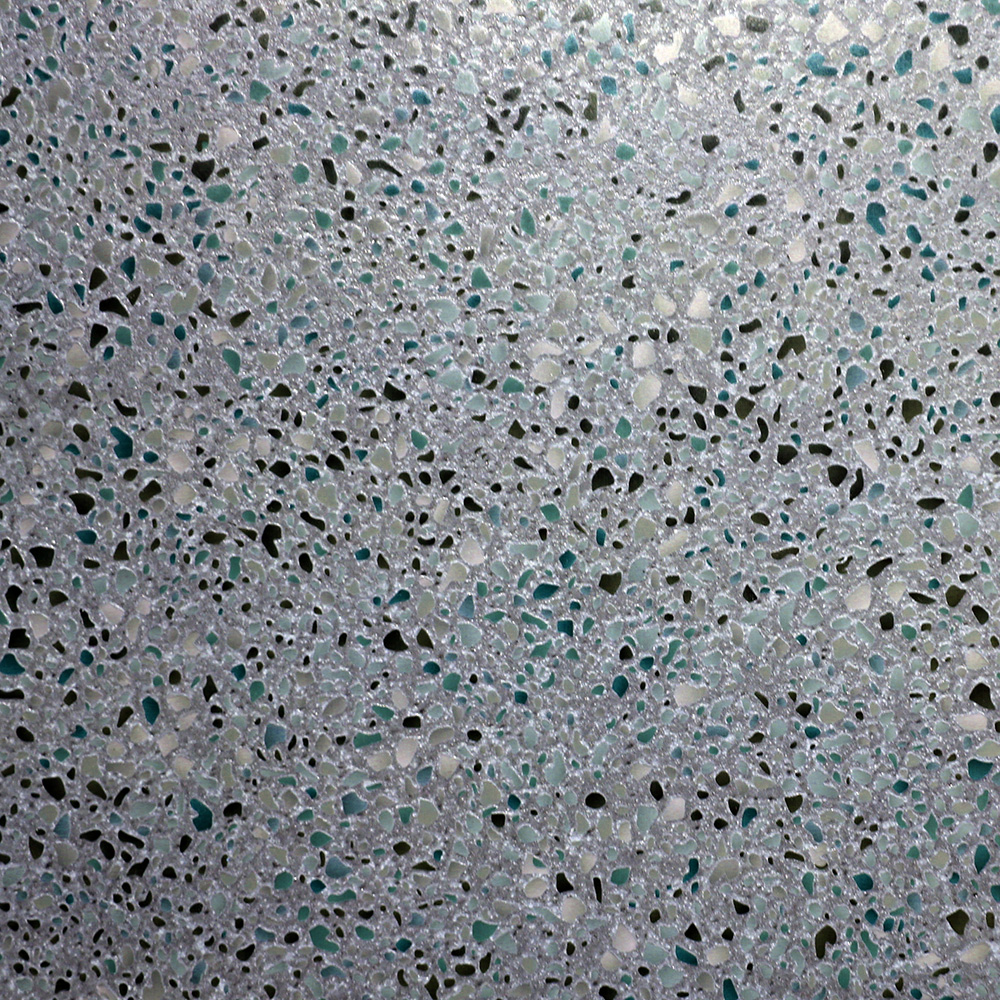 Axolotl Terrazzo is not a laminate, but rather an applied finish whereby the fine coloured aggregate is bound in the Axolotl Concrete treatment. It can be applied to almost any substrate including MDF and mild steel. Axolotl Terrazzo is suitable for internal applications, and each panel is treated to order. Applications can include counter fronts, feature walls, lift interiors, cabinetry, splash backs and signage. The unique properties of our terrazzo provide a flexible surface effect that encompasses the beauty of Terrazzo without the common weight, colour and size restrictions of the traditional material.