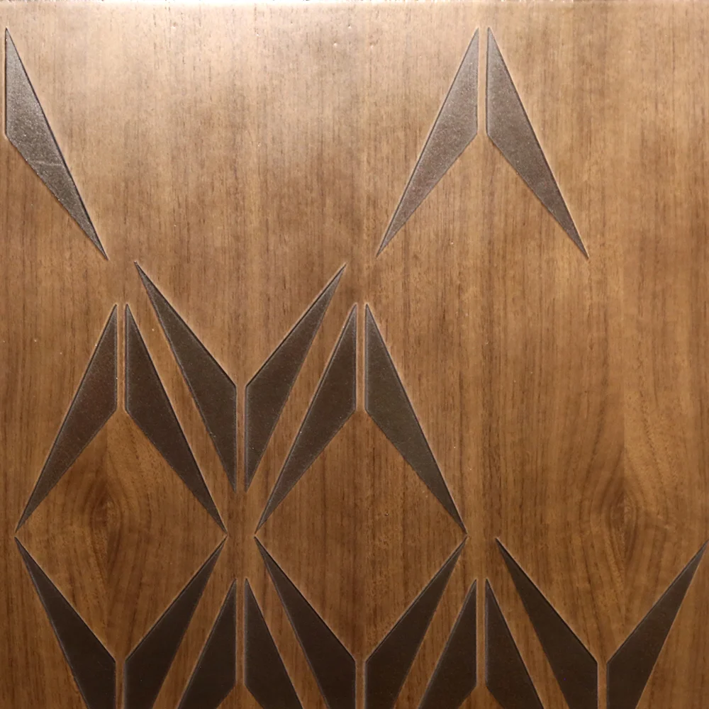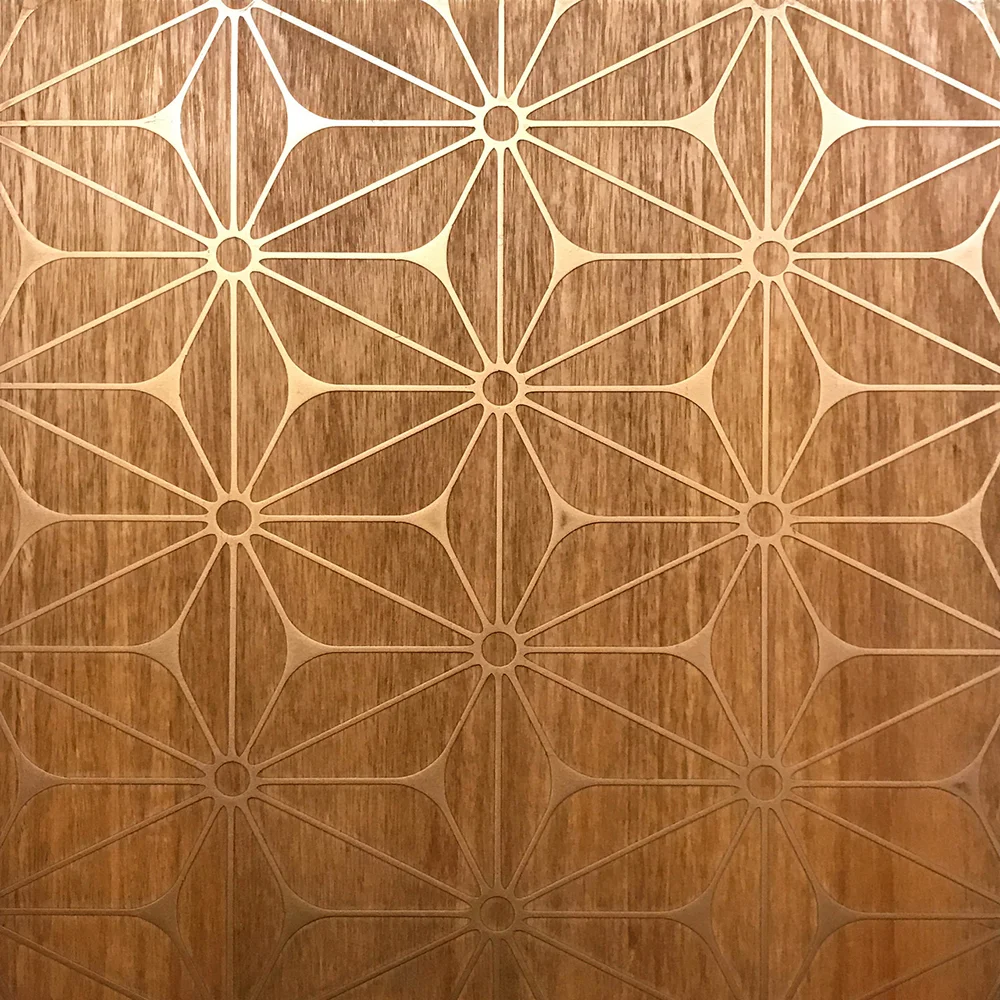 Link is a fusion of Axolotl metals applied as a custom design to the surface, or inlaid, into timber veneers or solid timber. Virtually any design can be incorporated into the timber from fine lace to bold geometric patterns. Link is available in a range of timbers and timber veneers and available in all Axolotl metals and concrete coatings.